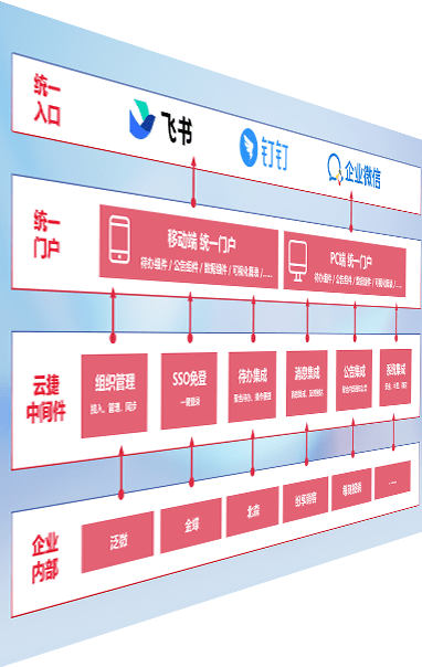 对协作平台提供支持服务,,,支持企业应用与协作平台对接,,,,包含组织同步、、消息集成、、、、待办集成等。。支持目前主流的协作平台:钉钉、、、企微和飞书。。。